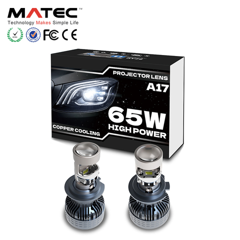 Ampoule de lentille de projecteur LED haute puissance A17 65W 6500lm H7 H11 HB3 HB4 lentille LED